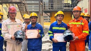 Pada tanggal 5 November, Alfian Aditia dan Bernadus J.S. Kambaly, karyawan Indonesia di bengkel pengecoran pabrik Huake di basis proyek pirometalurgi Weda, menemukan komponen roda mesin pengecoran yang sangat longgar selama inspeksi rutin. Mereka segera melaporkan temuan tersebut dan mendirikan area peringatan, sehingga berhasil mencegah kerusakan peralatan dan potensi kecelakaan. Basis proyek memberikan penghargaan tinggi kepada keduanya, memberikan hadiah, dan menjadikan mereka sebagai teladan keselamatan. Semua karyawan didorong untuk meningkatkan kesadaran dalam mendeteksi potensi bahaya, guna bersama-sama memperkuat pertahanan produksi yang aman.