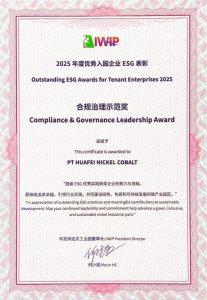 Pada tanggal 15 Januari, dalam konferensi pembangunan bersama kawasan industri berkelanjutan yang diselenggarakan oleh Organisasi Pengembangan Industri Perserikatan Bangsa-Bangsa (UNIDO) dan Kawasan Industri Weda Bay (IWIP), PT Huafei berhasil meraih penghargaan “Compliance Governance Model Award” atas kinerjanya yang luar biasa di bidang tata kelola kepatuhan dan pembangunan berkelanjutan. Penghargaan ini merupakan bentuk pengakuan atas pola operasional Huafei yang bertajuk “Kepatuhan sebagai Inti, Jaminan Multidimensi”, yang diwujudkan melalui perolehan berbagai sertifikasi sistem manajemen ISO serta keberhasilan dalam audit RMAP, terutama dalam bidang manajemen kepatuhan, perlindungan lingkungan, hak-hak karyawan, dan rantai pasok berkelanjutan. Ke depannya, Huafei akan menjadikan momentum ini untuk terus memperdalam pembangunan sistem kepatuhan serta memimpin arah pengembangan industri yang berkualitas tinggi.